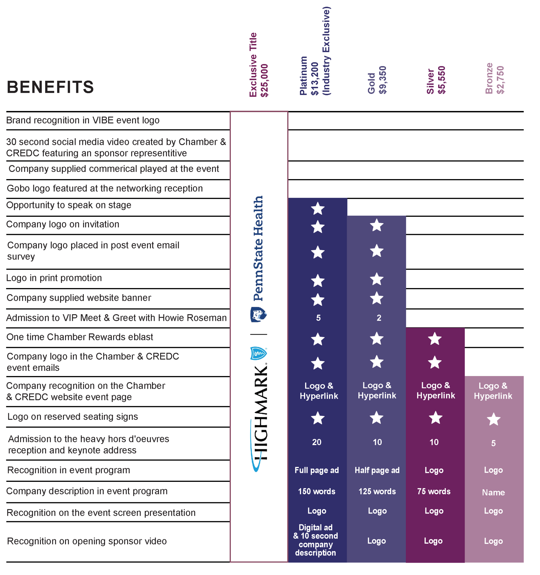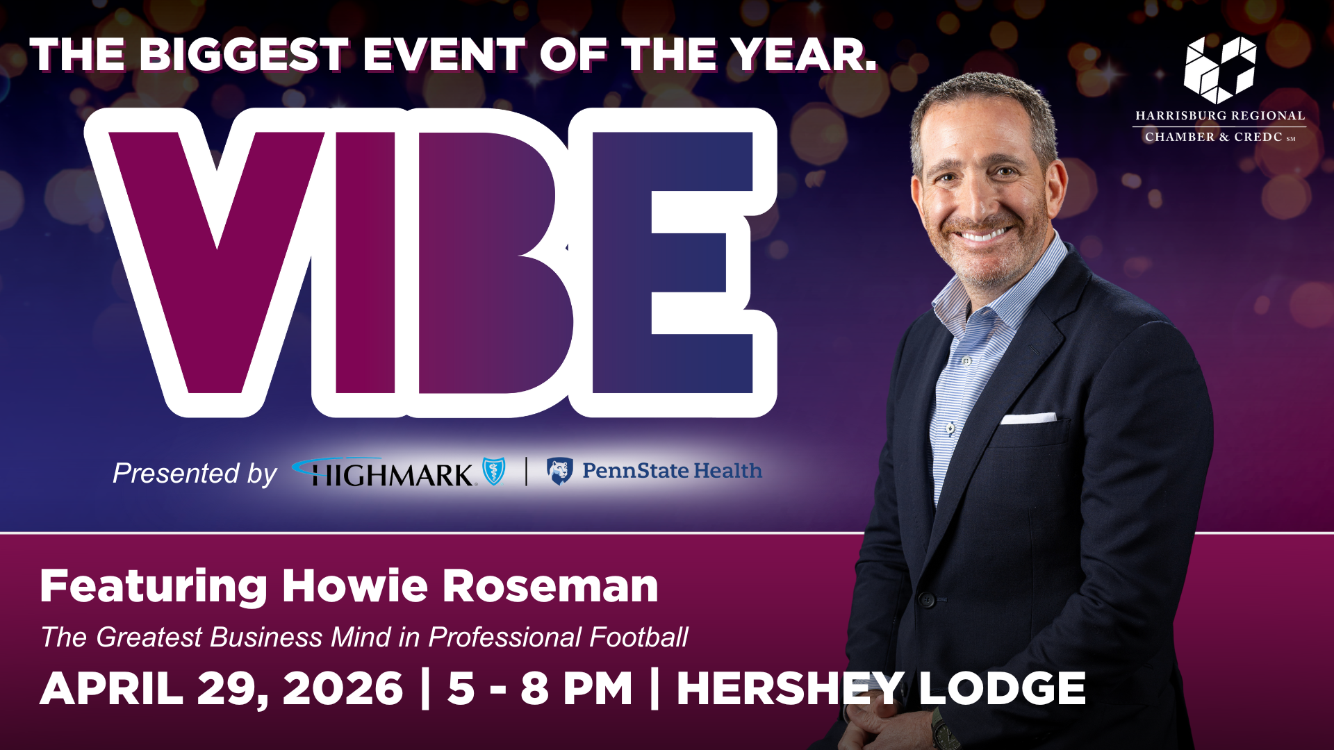 VIBE is the Harrisburg Regional Chamber & CREDC’s biggest event of the year – and our largest fundraiser! Setting the bar high for networking in the Harrisburg region, 600 business influencers join us each year to strengthen relationships and learn something new at this cutting-edge event. A valuable networking reception will be followed by a fireside chat with our featured speaker.